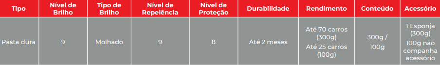 Desenvolvida especialmente para realçar o brilho de carros pretos e escuros, também pode ser aplicada em veículos de cores claras, oferecendo um acabamento de brilho molhado intenso.